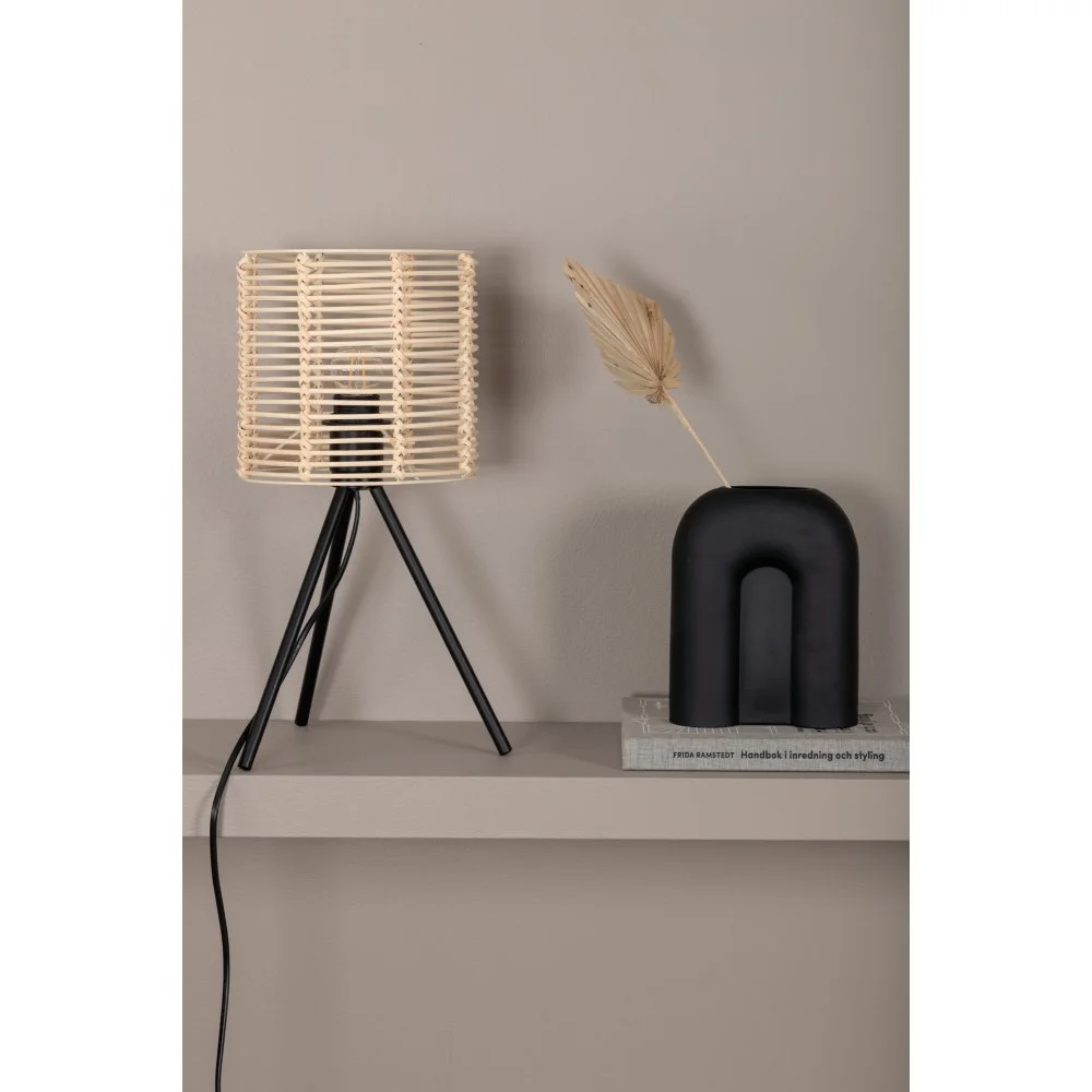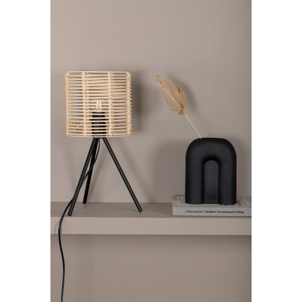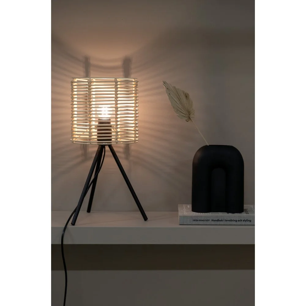 Bordslampa av metall, PVC och rotting.