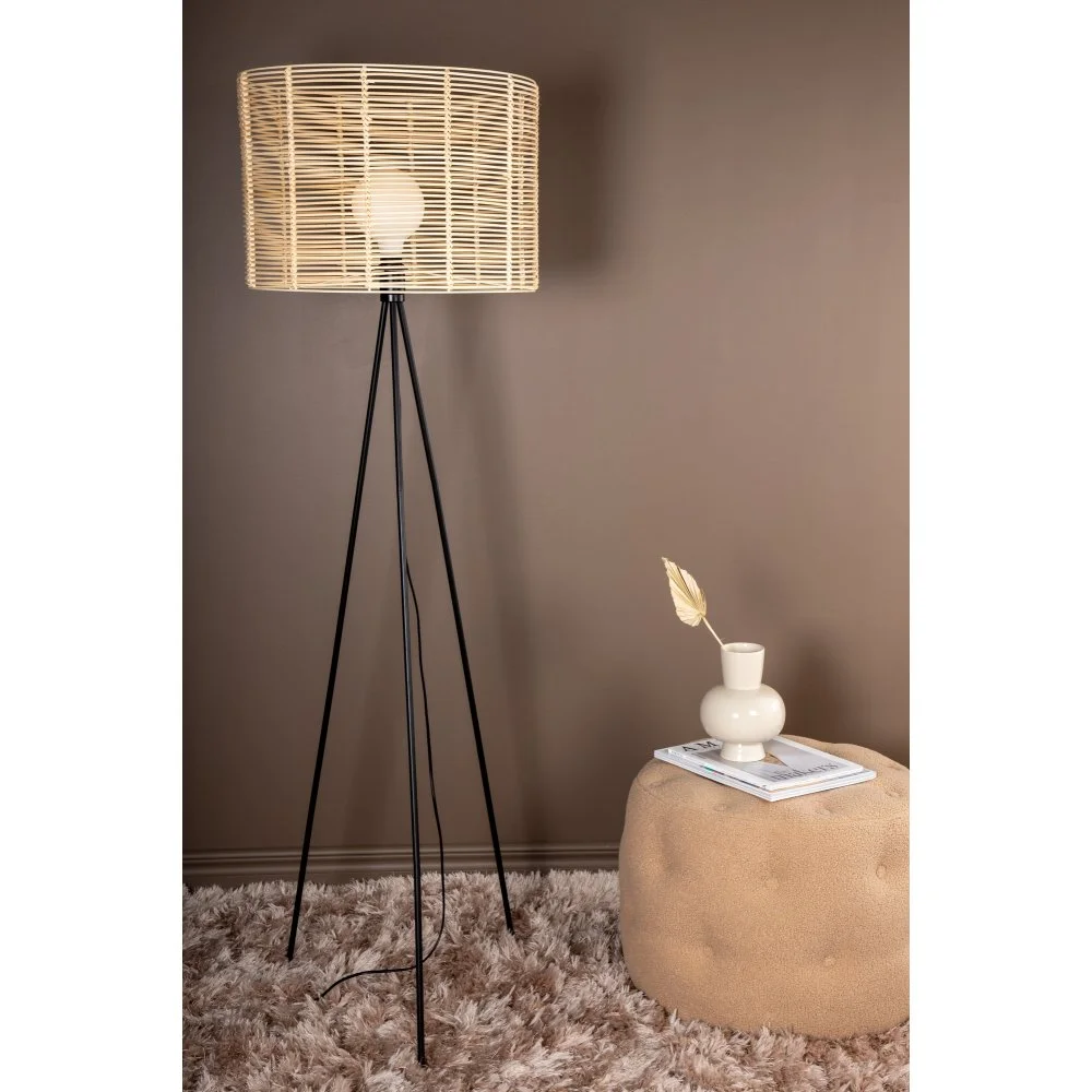 Golvlampa av metall, PVC och rotting.