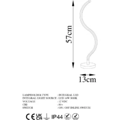 Bordslampa av metall. Ljuskälla är integrerad i lampan och går ej att byta.